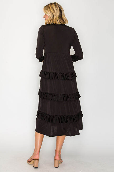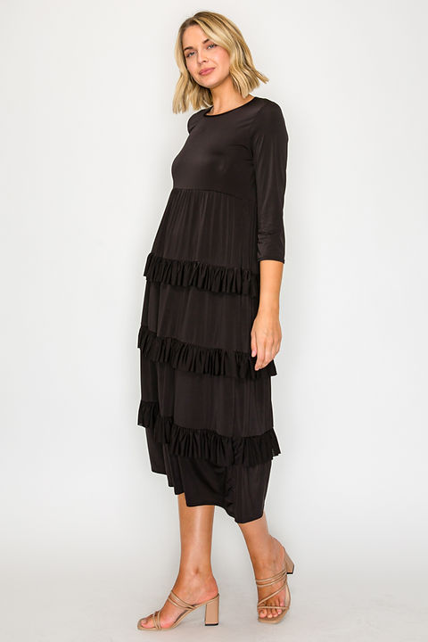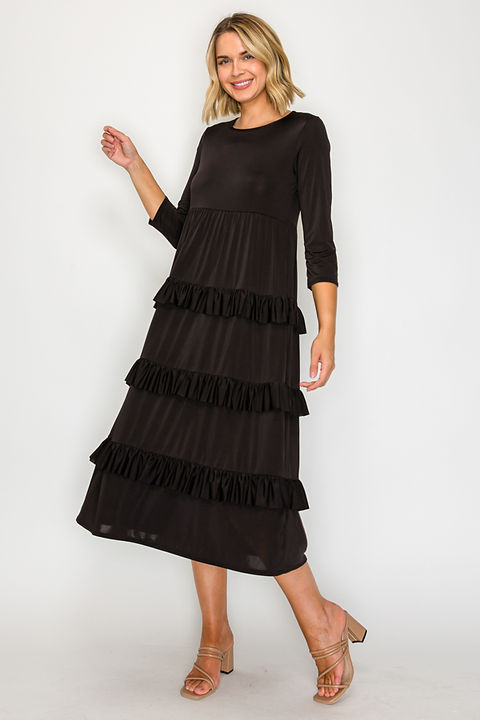 Introducing Talisa - the perfect tiered ruffled midi dress for any occasion! With convenient pockets and 3/4 sleeves, this dress is both stylish and practical. Made of slinky, non-wrinkle material, it offers both comfort and elegance for any event.